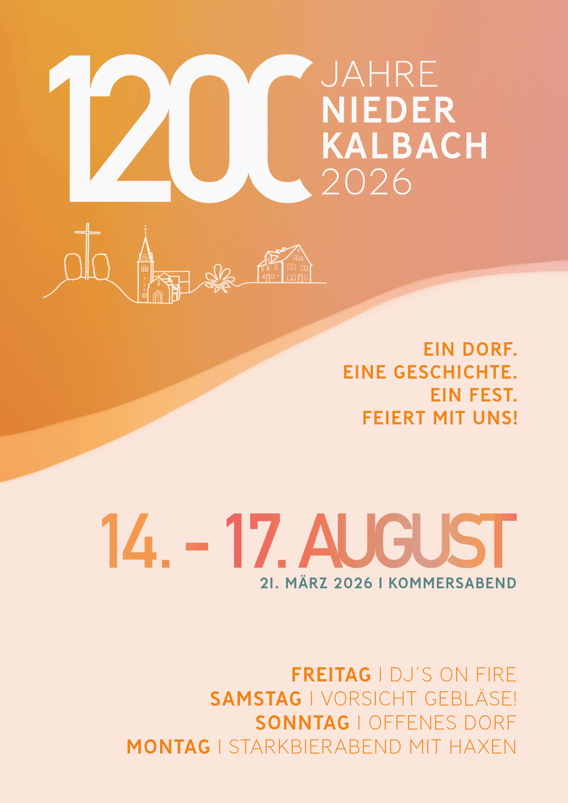 Seid dabei, wenn vom 14. – 17.August 1200 Jahre Niederkalbach gefeiert wird – wir freuen uns auf euch!